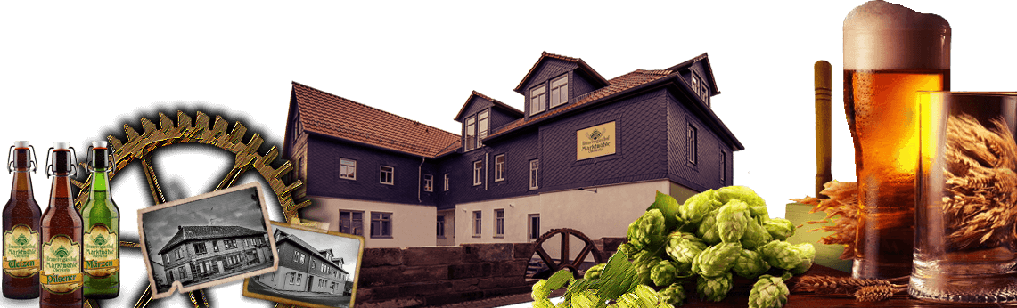 “Probieren Sie das hauseigene Marktmühlen Bier, z.B. Pils, Märzen, Weizen.“